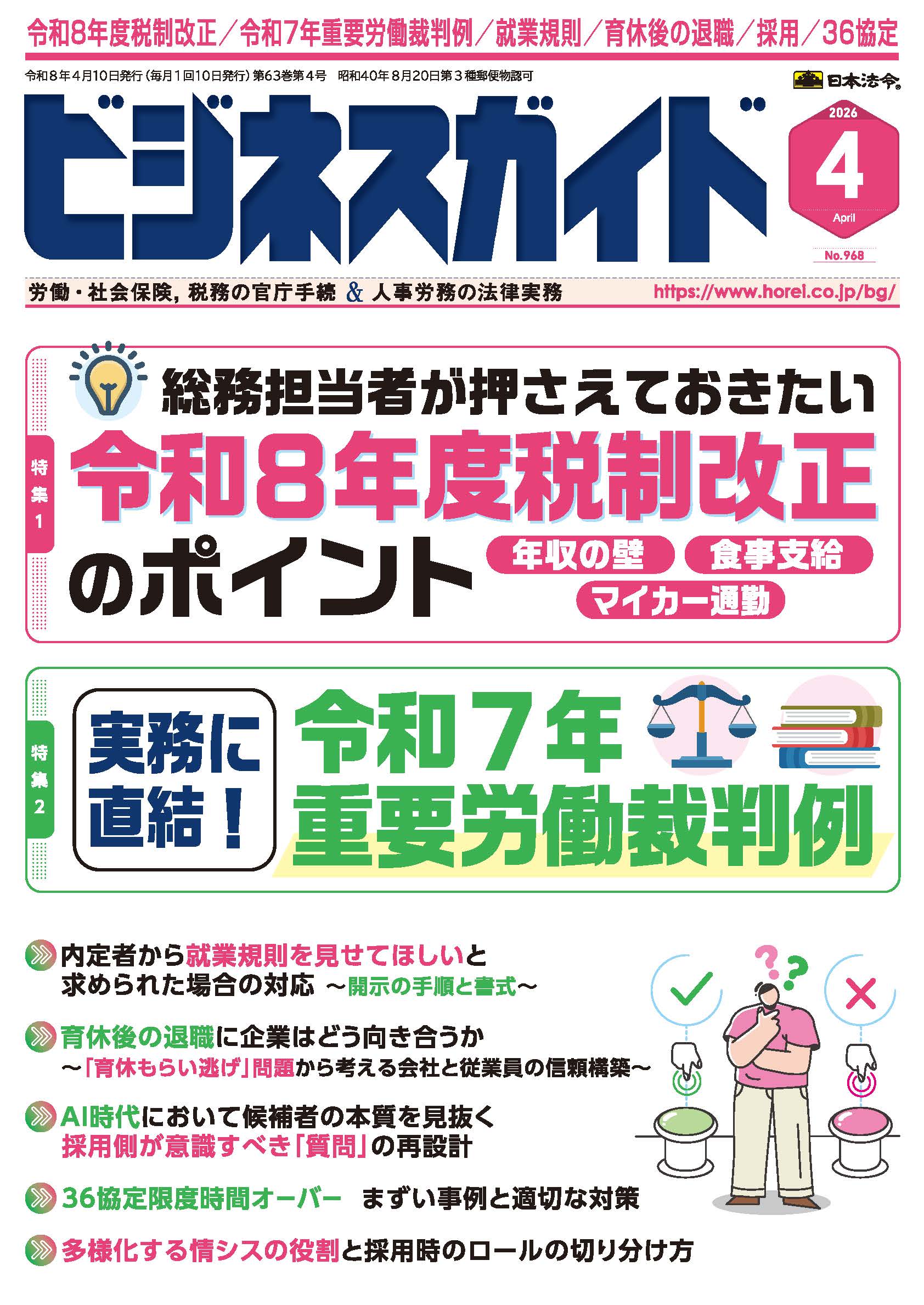 ビジネスガイド(2016.8) 「労働条件通知書兼雇用契約書に何をどう盛り込むか」